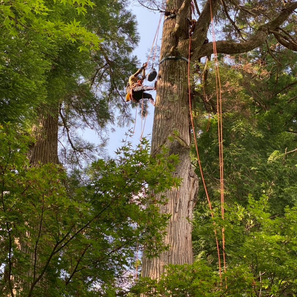 樹木診断、高木の剪定、環境改善、幼稚園や小学校への出張樹木学習、大学生への作庭実習、そして近年は園庭づくりの依頼が増えています。